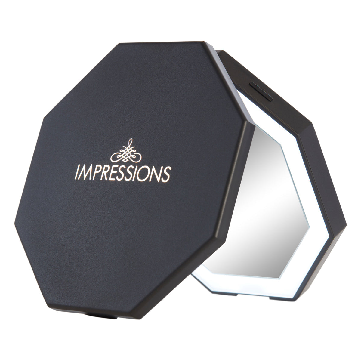 Bring your vanity to new heights with our Cosmic Wireless Charging LED Compact Mirror by Impressions Vanity®. Illuminate your look at the press of a button with our LED lightstrip with adjustable brightness to fit any setting.