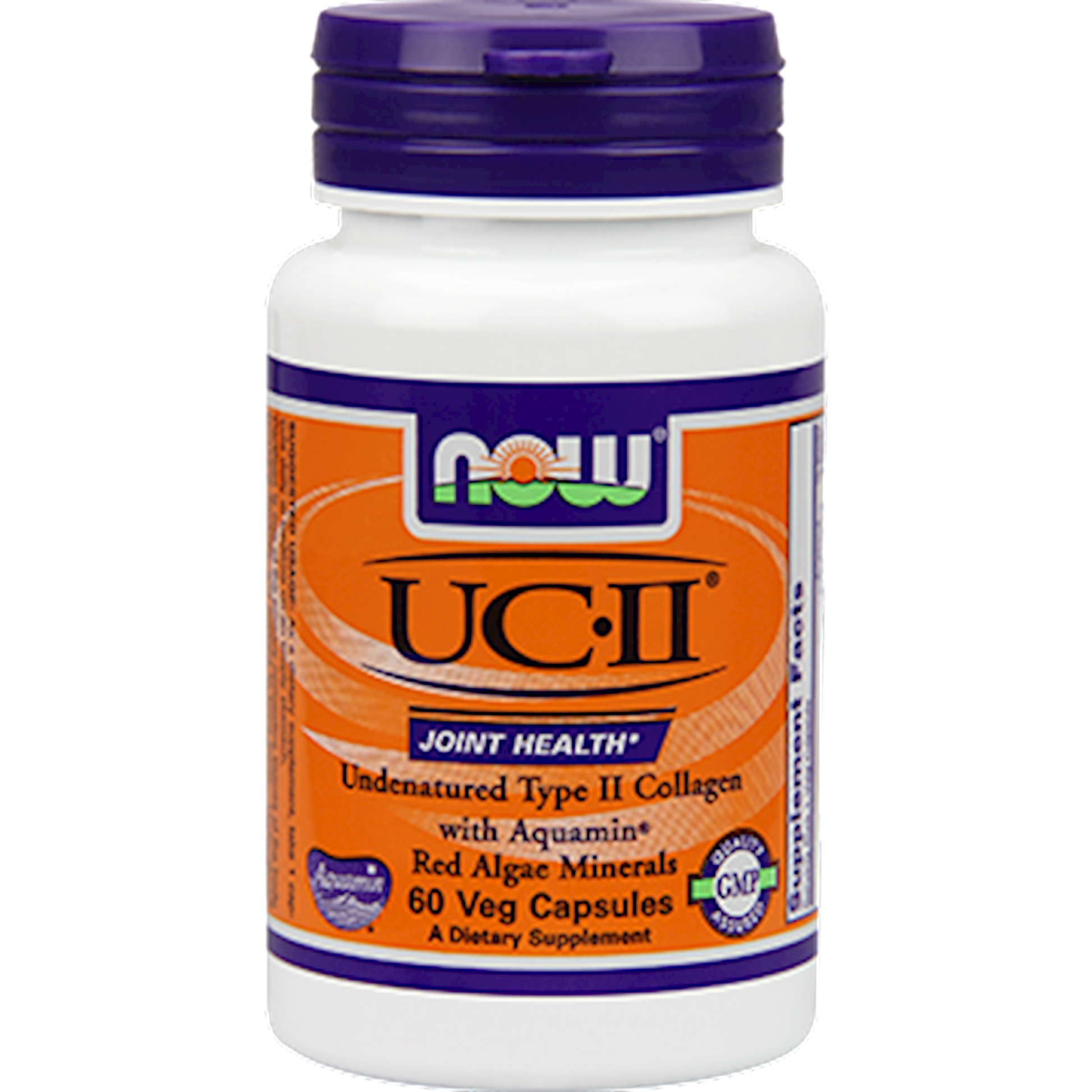 Cartilage is one of the primary connective tissues of the body, providing flexibility and support to joints. Undenatured type II collagen is the principal structural protein in cartilage that is responsible for its tensile strength and toughness.* Derived from chicken sternum cartilage, UC-II is a patented form of collagen with undenatured (native) type II collagen that works with the immune system to support healthy joints.* Human clinical studies have found that just one 40 mg capsule of UC-II per day can help to promote joint comfort, as well as healthy joint function and flexibility.* **UC-II brand collagen with undenatured type II collagen (U.S. Patents 7,846,487, 7,083,820, 9,066,926 and EPO Patent EP1435906B1; Canadian patent CA 2459981C; and Japanese Patent JP 4800574B2). UC-II and logo are InterHealth N. I. trademarks. Aquamin is a registered trademark of Marigot Limited. Natural color variation may occur in this product. With Undenatured Type II Collagen Promotes Healthy Joint Comfort and Function*
